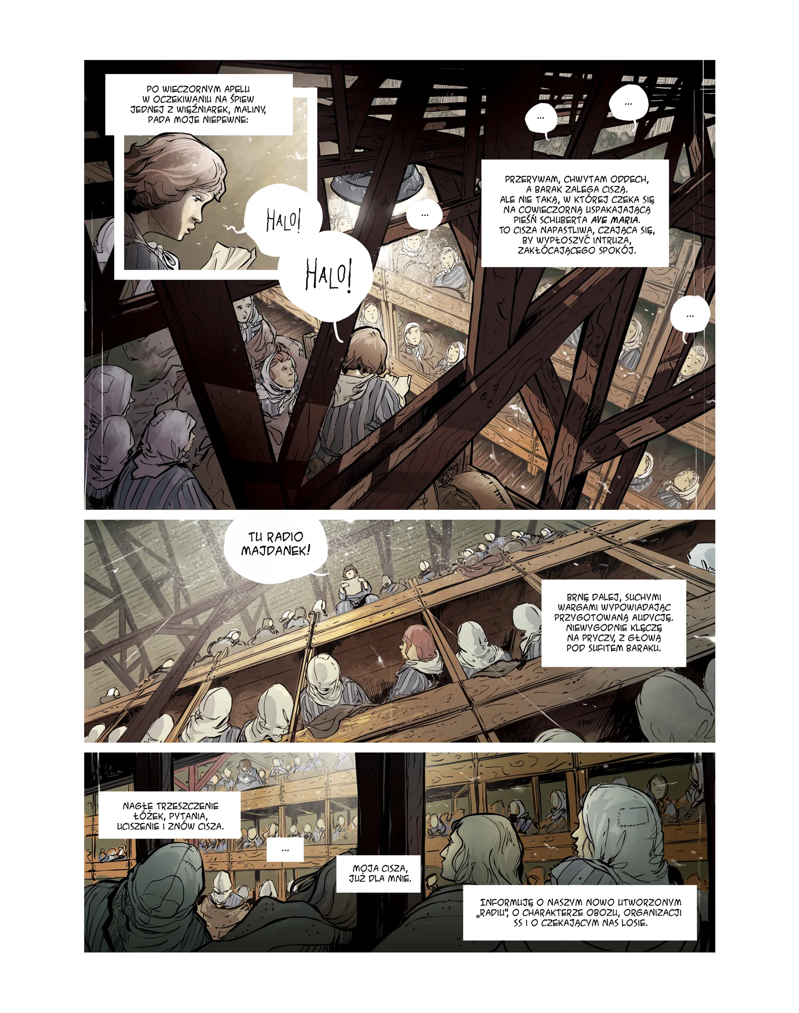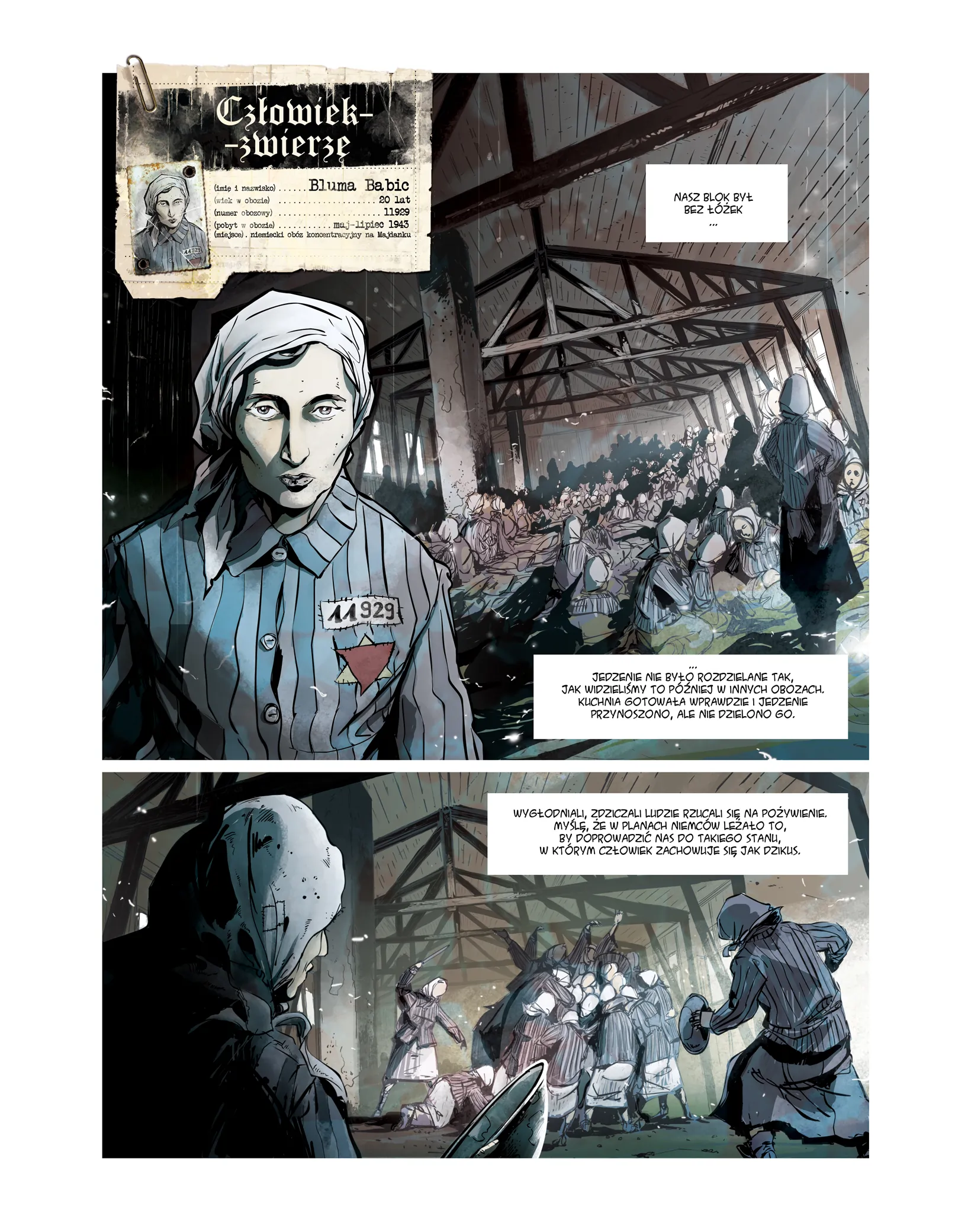 Autor wykorzystał fragmenty wspomnień z książek Niebo bez ptaków Danuty Brzosko-Mędryk, Pole śmierci Andrzeja Stanisławskiego i Majdanek. Obóz koncentracyjny w relacjach więźniów i świadków w opracowaniu Marty Grudzińskiej oraz relację Jolanty Nowakowskiej-Korzeniewskiej, jako dziecko osadzonej na Majdanku. Komiksowi towarzyszą: krótkie posłowie historyczne, słownik terminów i biogramy więźniów, których historie stały się kanwą narracji.